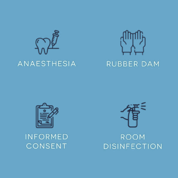 Det er en selvfølge hos os, at vi anvender kofferdam (gummiklæde (nitril) omkring tanden) for fuldstændigt at isolere enhver tand, der skal gennemgå eksempelvis rodbehandling.Informeret samtykke